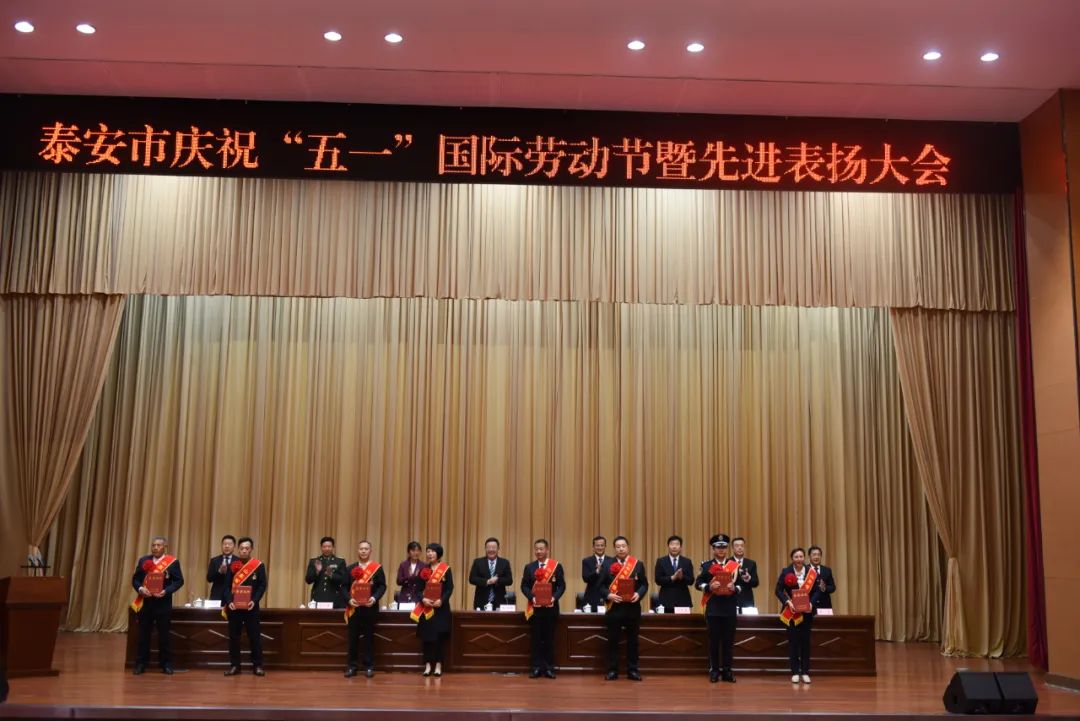 4月27日下午,泰安市慶祝“五一”國際勞動節暨先進表揚大會召開,張繼生同志上臺接受表彰。