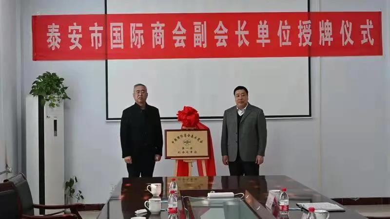 11月24日上午,泰安市貿促會黨組書記、會長陳勇副會長張桂一行,在肥城市貿促會會長朱建國、副會長王萬里和高新區黨工委副書記、王瓜店街道黨工委書記杜輝等陪同下來金塔集團舉辦泰安市國際商會副會長單位授牌儀式